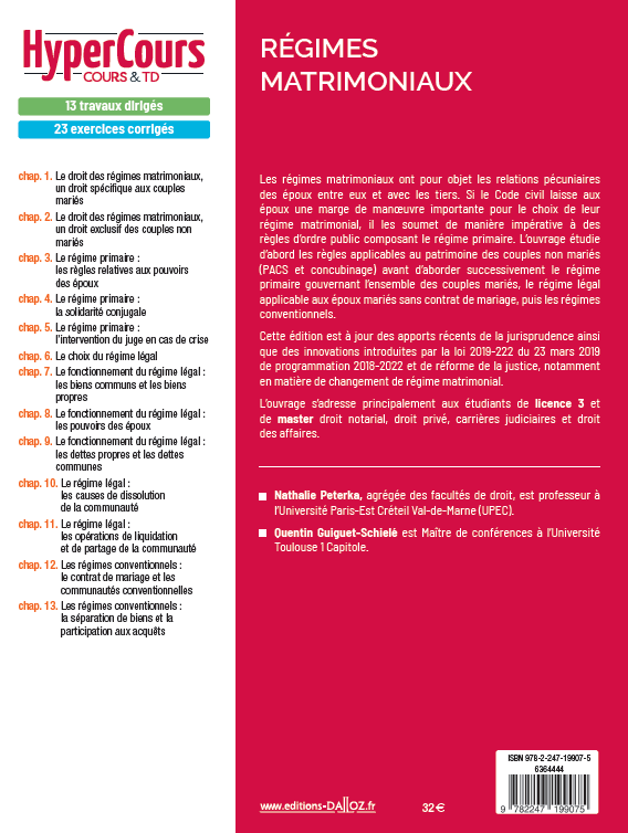 "Régimes matrimoniaux - 6ème édition", HyperCours écrit par Quentin GUIGUET-SCHIELE