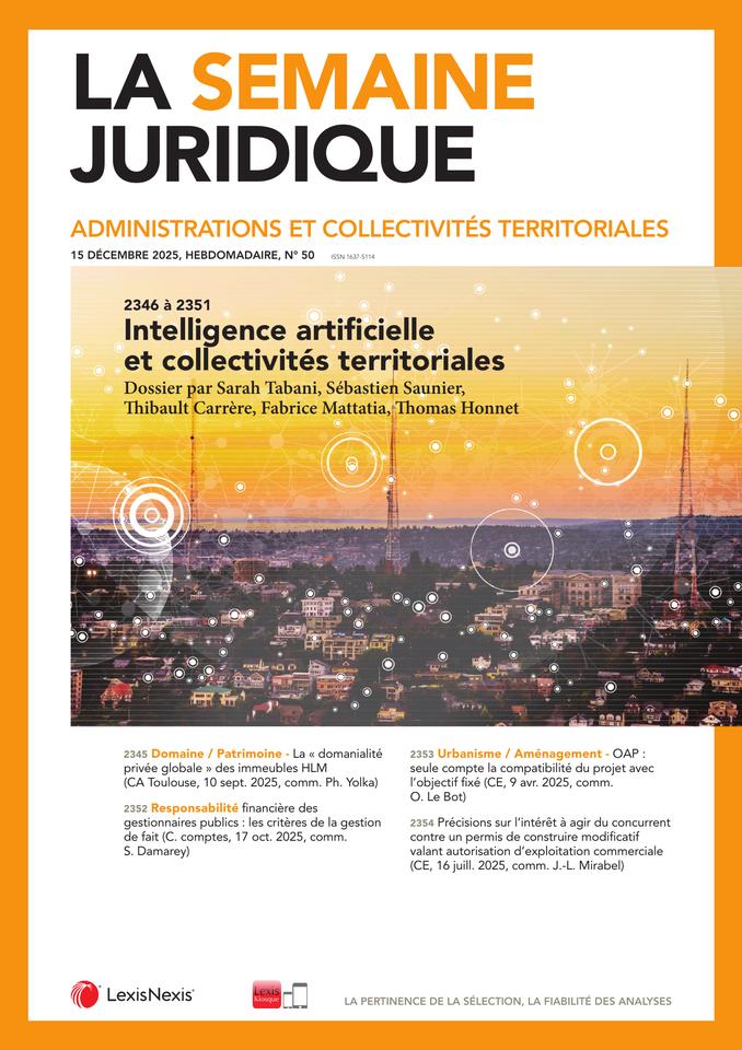 La semaine juridique administrations et collectivités territoriales, n°50 du 15/12/2025. Dossier "IA et collectivités territoriales", étude 2348