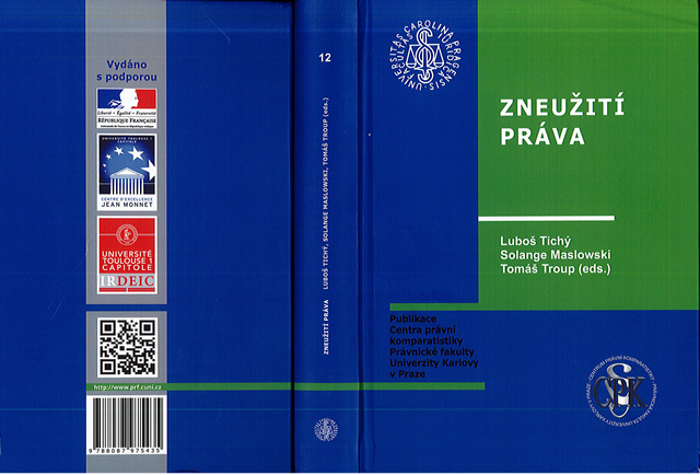 Actes du colloque, intitulé « L’abus de droit, regards croisés franco-tchèques » Colloque organisé par le Centre de droit comparé de l’Université Charles de Prague et par le Centre de droit comparé affilié à l’IRDEIC de l’Université Toulouse 1 Capitole, qui s'est déroulé les jeudi 18 et vendredi 19 juin 2015 dans les locaux de l’Université Charles, à Prague (République tchèque).