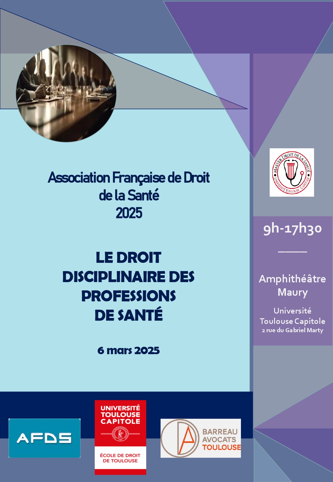 juges de la santé en 2023 à l’Université de Bordeaux, l’AFDS a choisi pour cette année 2025 d'organiser sa traditionnelle manifestation à l’Université Toulouse Capitole et particulièrement l’École de Droit de Toulouse. Cet événement se tiendra à l’initiative du