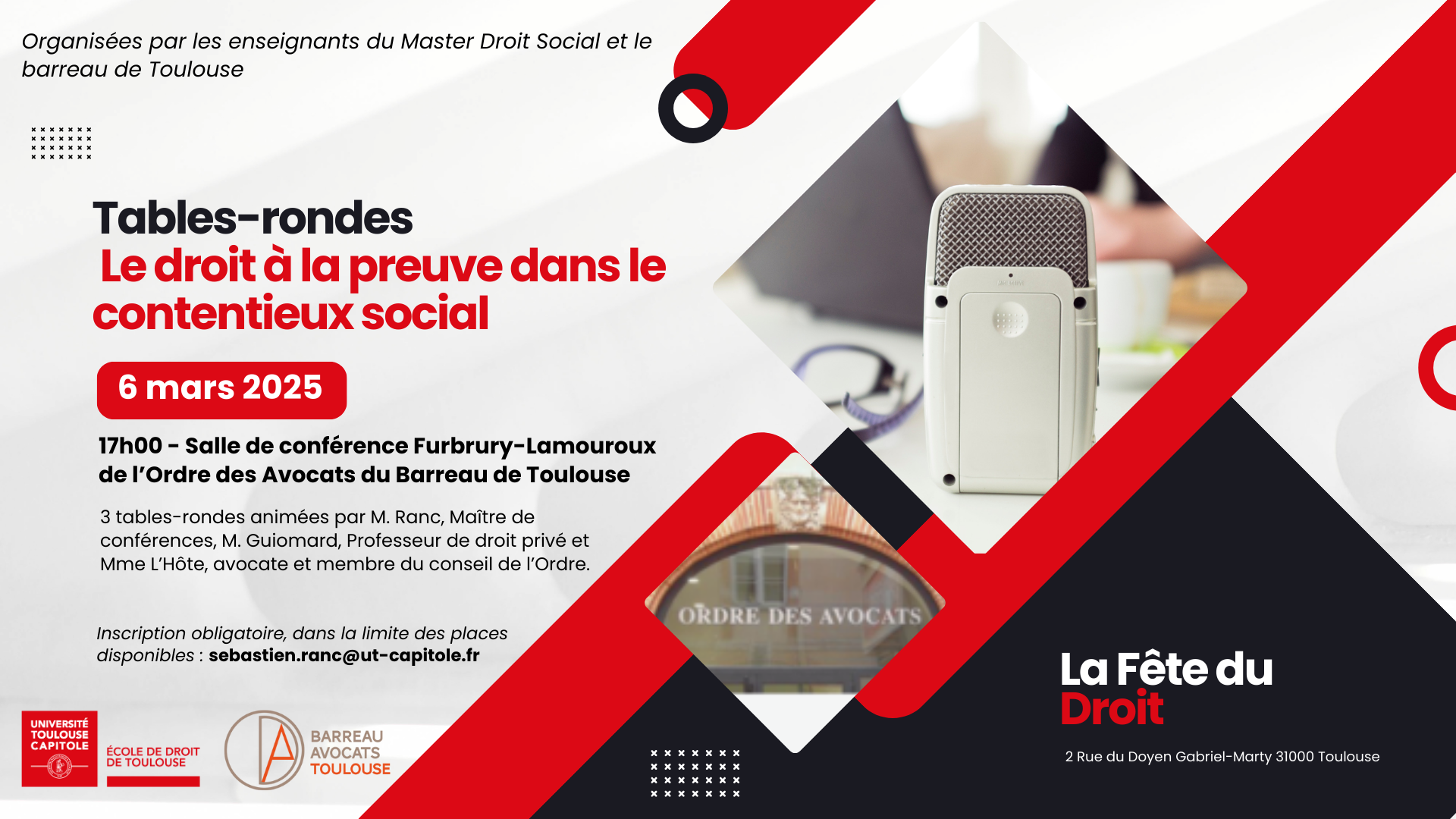 Inscription obligatoire, dans la limite des places disponibles : sebastien.ranc@ut-capitole.fr