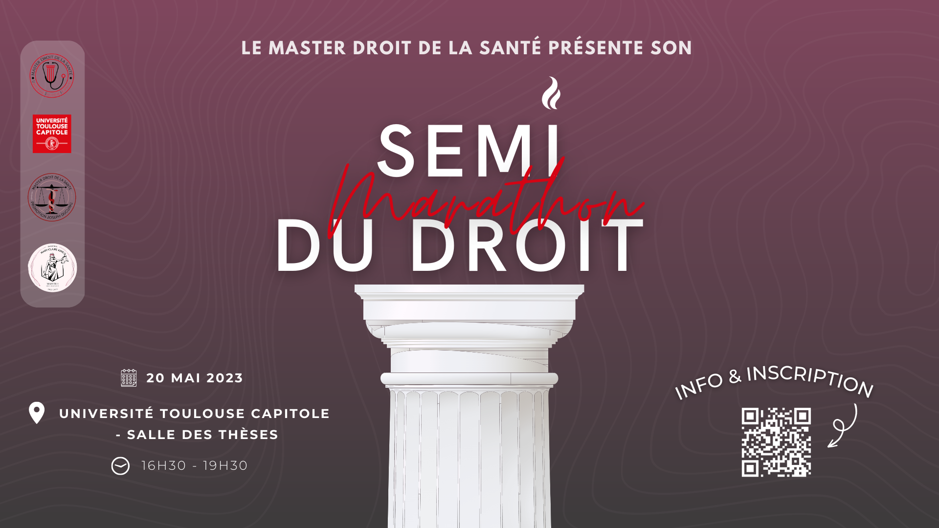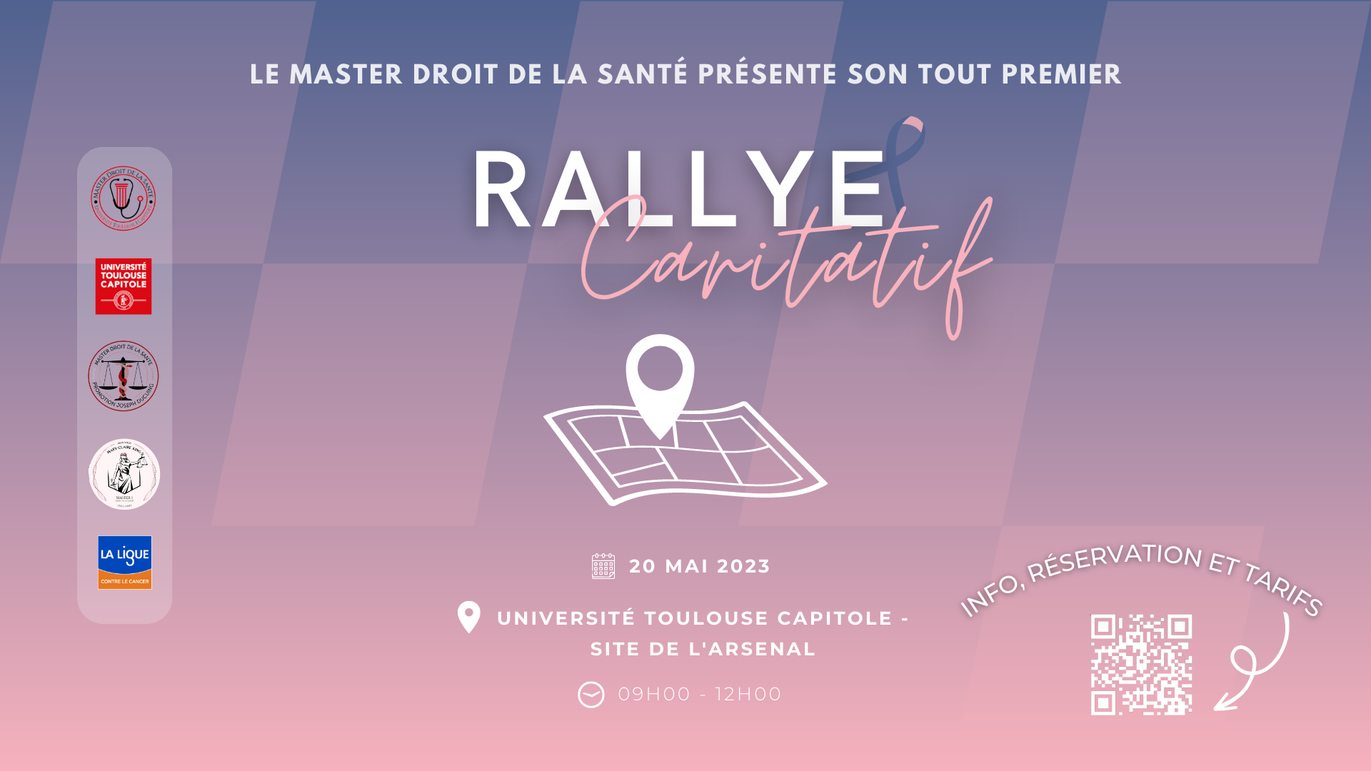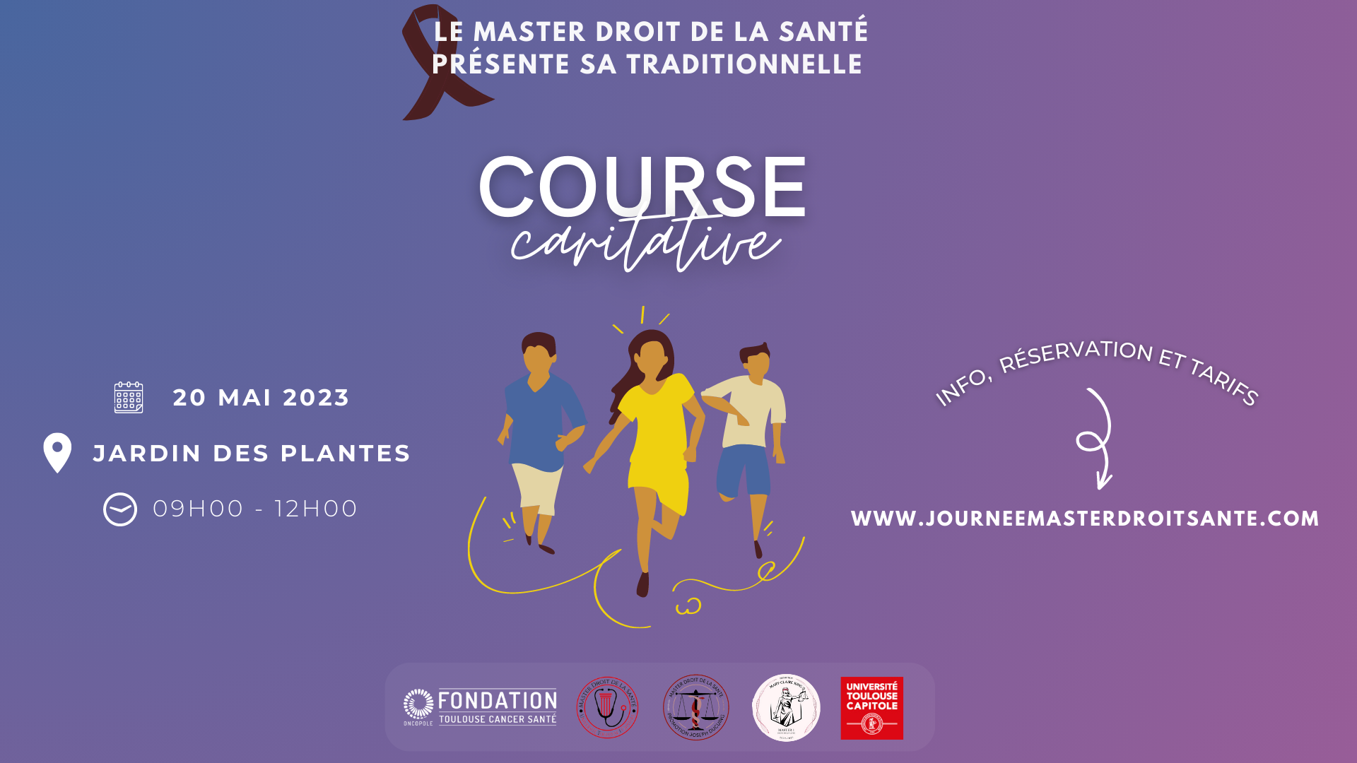 Le samedi 20 mai 2023, l'association du Master Droit de la Santé de la Faculté de droit de Toulouse organise une journée caritative en faveur de la lutte contre le cancer. Au programme : course et rallye caritatifs, conférence et semi-marathon du droit. L'objectif de cet événement solidaire et festif est de sensibiliser les étudiants et le grand public aux enjeux de la santé et de récolter des fonds pour soutenir une cause importante.