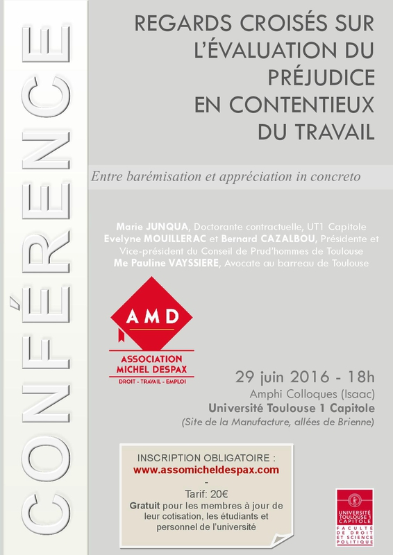 Regards croisés sur l'évaluation du préjudice en contentieux du travail, conférence annuelle de l'association Michel-Despax
