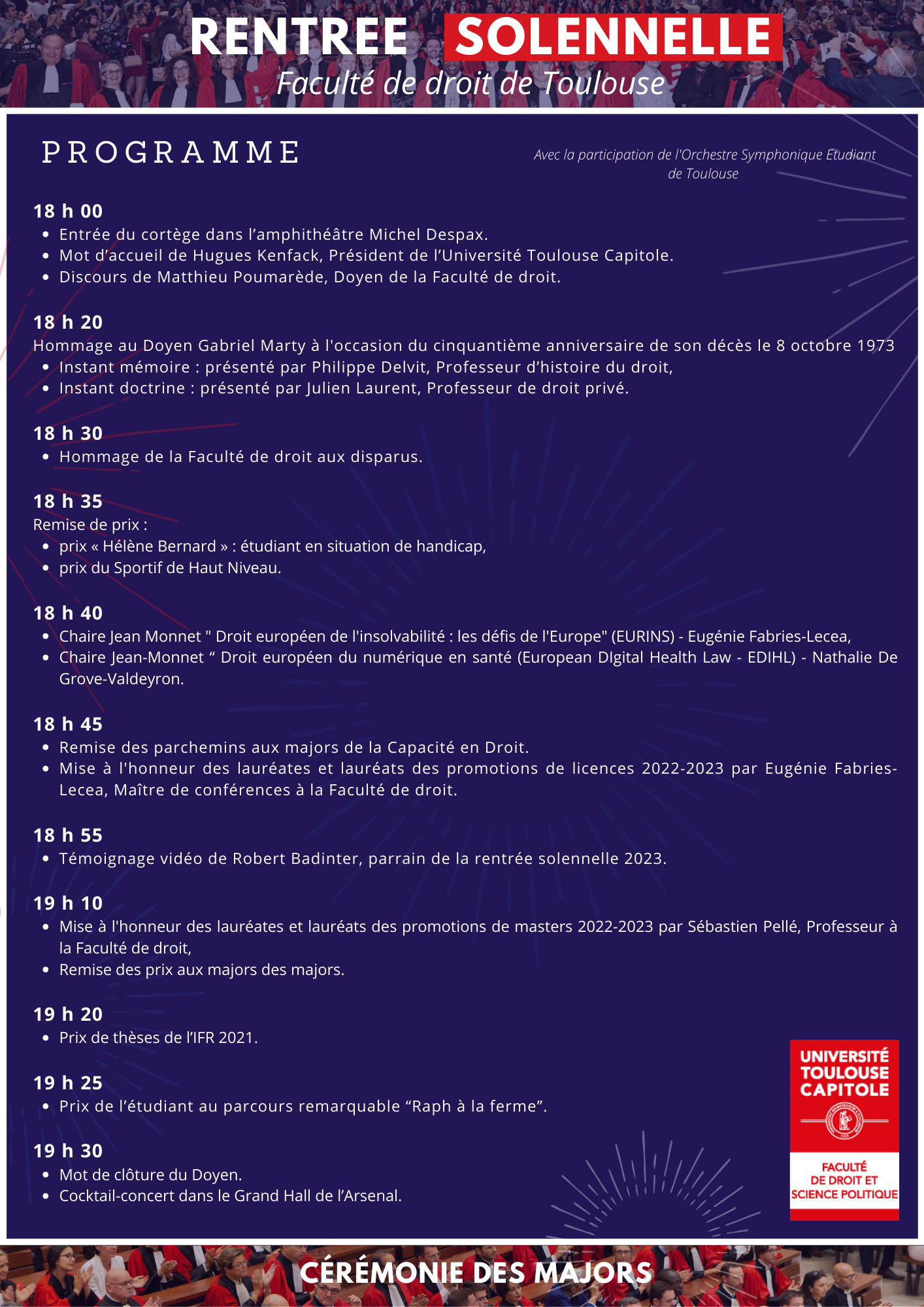 nos majors de promotion (Licences, Masters, Collège Supérieur de Droit, Formation Continue et Formation Ouverte à Distance), mais également de remettre certains