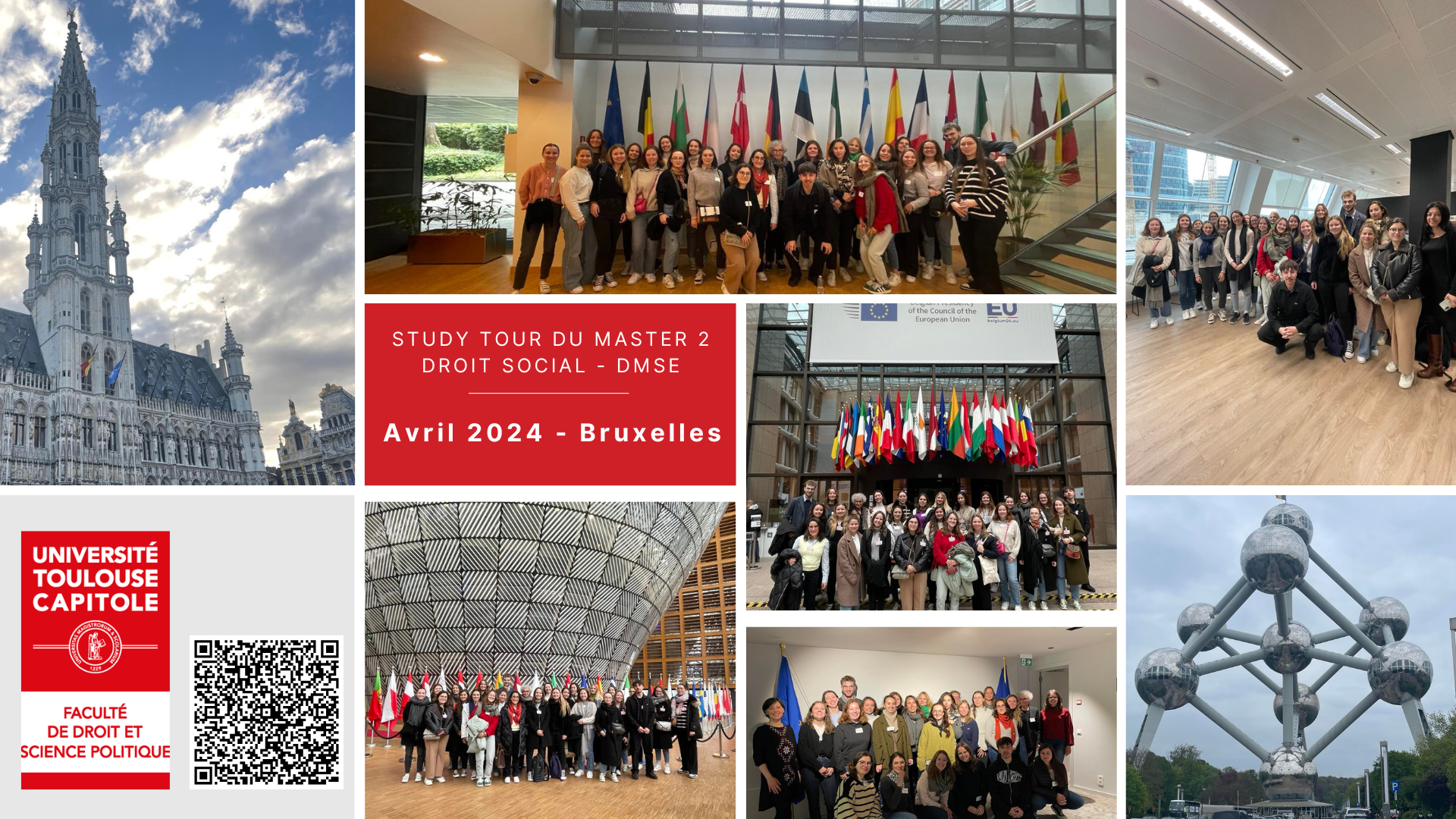 Le Master 2 Droit et Management Social de l'Entreprise (DMSE) de la Faculté de droit a récemment organisé un voyage d'études d'une semaine à l'étranger, dans le cadre de son programme de « Study Tour ». En avril dernier, les étudiants ont eu le privilège de découvrir la dynamique ville de Bruxelles.