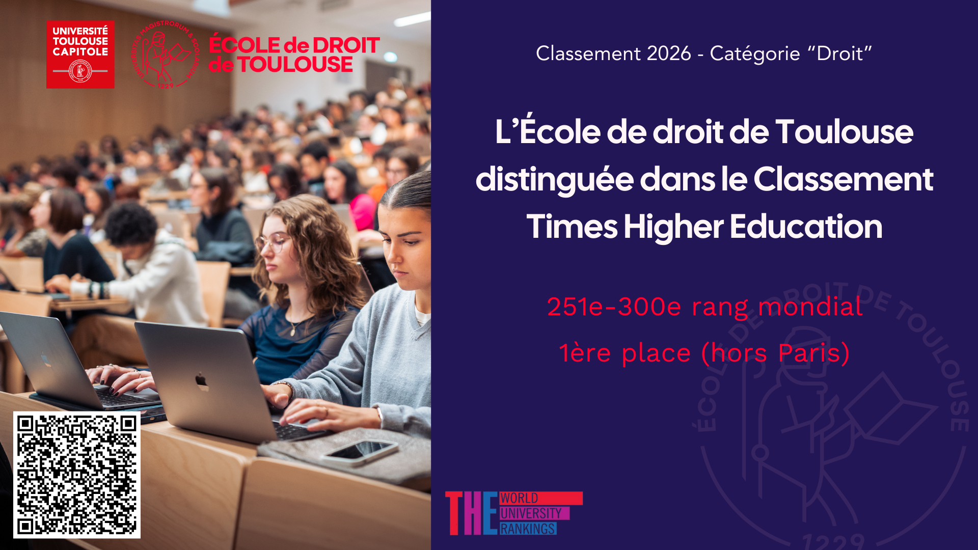 L'École de droit de Toulouse distinguée dans le classements Times Higher Education 2026 !