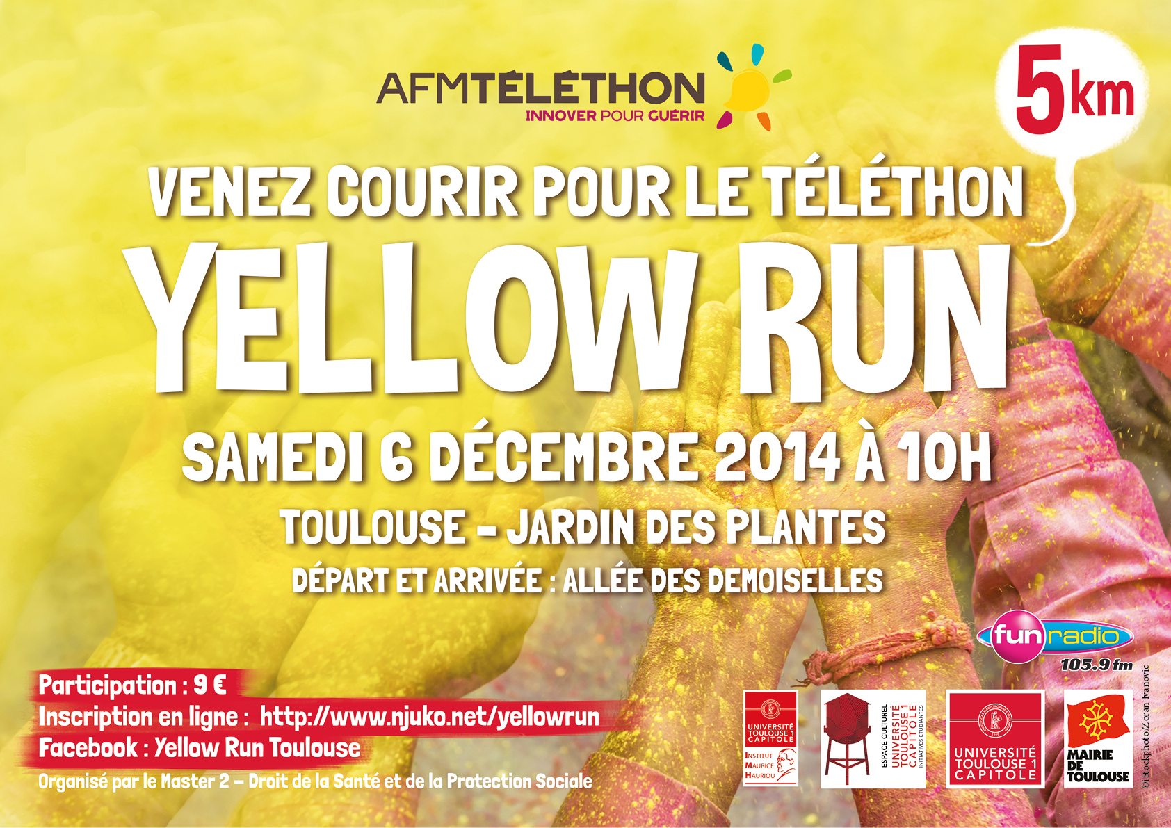 - Les partenaires principaux de l'évènement sont l'AFM Téléthon, la mairie de Toulouse et l'Université Toulouse 1 Capitole pour la correcte mise en oeuvre de l'évènement Yellow Run.